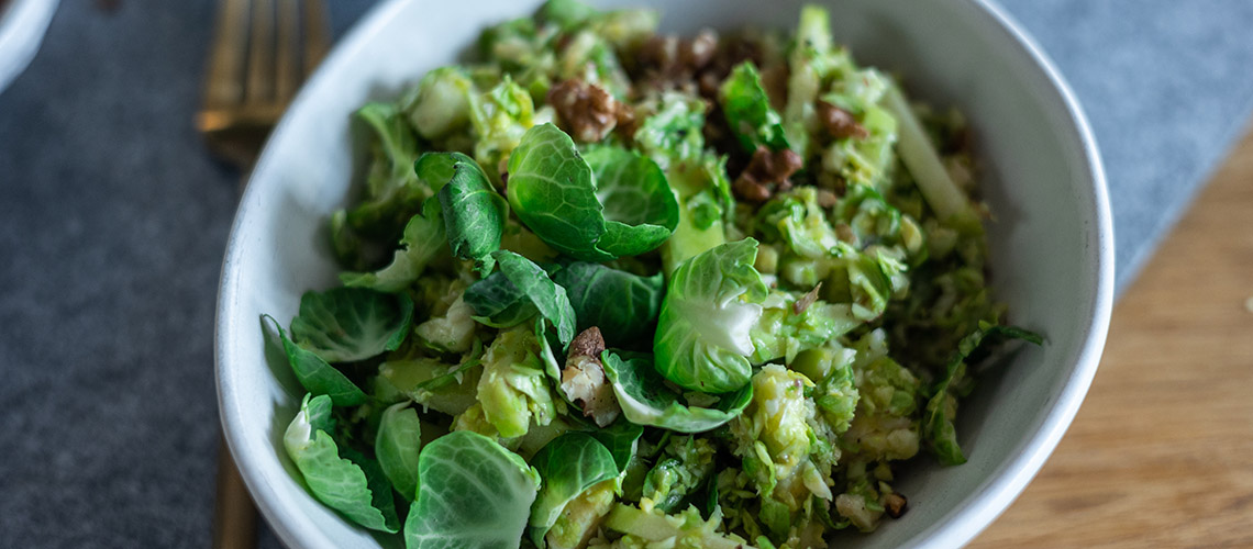 A kelbimbót leveleire szedjük vagy késes aprítógépben finomra aprítjuk, mintha káposztasalátát készítenénk. Egy nagy keverőtálba tesszük, meghintjük sóval és meglocsoljuk egy kevés citromlével, bele reszelhetjük a citrom héját is.