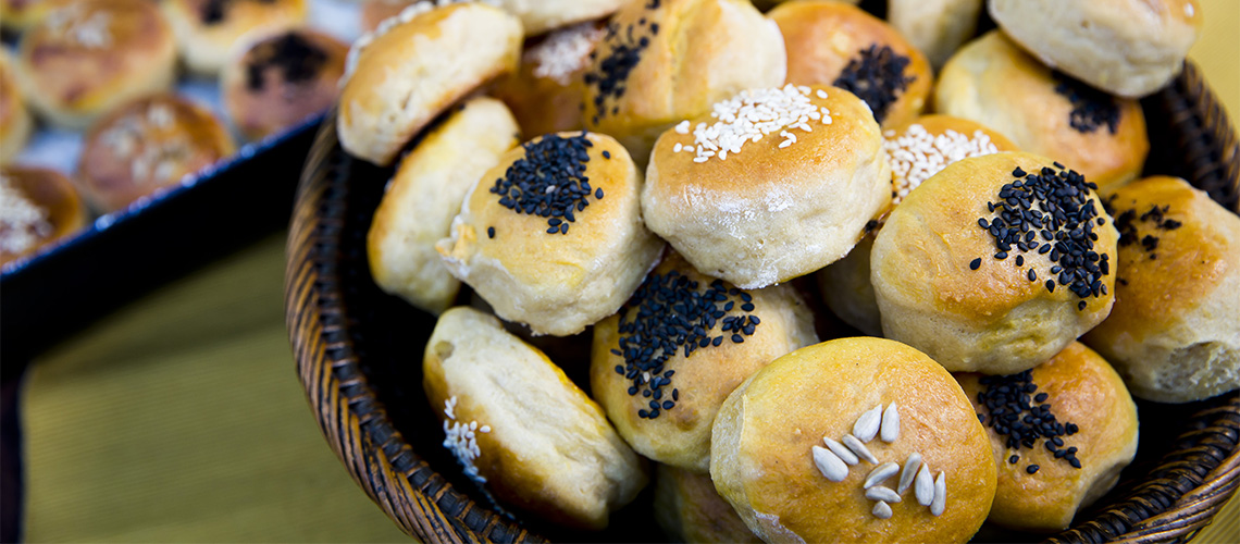 A korongokat sütőpapírral bélelt tepsire rakjuk, lekenjük a felvert tojással.
