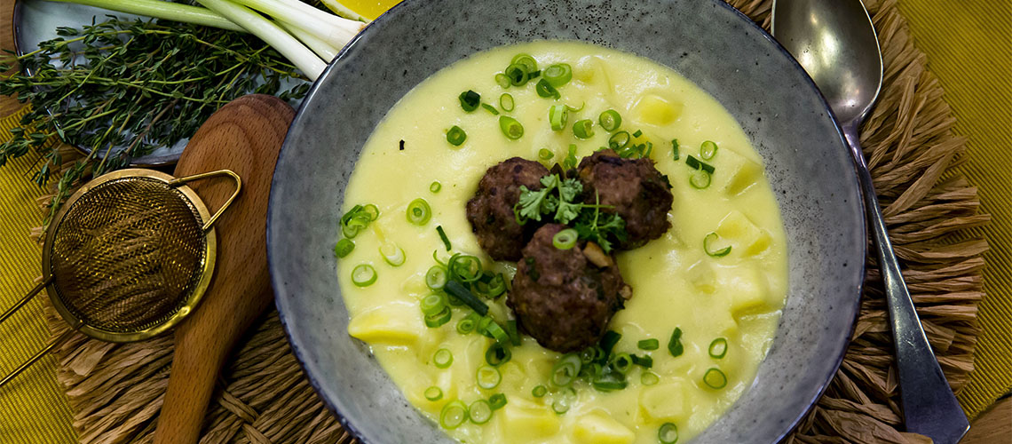 A fasírthoz keverjük össze a húsokat egy keverőtálban. A zsömlét, vagy kovászos kenyeret áztassuk be tejbe és nyomkodjuk ki. A hagymát vágjuk apróra és kevés zsíron dinszteljük meg, majd húzzuk félre és szórjuk meg vágott petrezselyemmel. Adjuk a tojást, a kinyomkodott zsömlét és a dinsztelt hagymát a darált húshoz. Fűszerezzük sóval, borssal és alaposan keverjük össze. A gombákat gyorsan öblítsük le, ne áztassuk. Vágjuk őket fel cikkekre és kevés olíva olajon pirítsuk őket meg alaposan. Sózzuk, borsozzuk, friss kakukkfűvel ízesítsük, majd adjunk hozzá kevés vajat és főzzük el az összes levet róla. Keverjük a sült gombákat is a húsmasszához. Ha nagyon lágy, egy kanál morzsával tudjuk szilárdabbá tenni. Formázzuk a golyókat és tegyük félre. A főzelékhez a póré fehér részeit olíva olaj és vaj keverékén dinszteljük meg, majd adjuk hozzá a hámozott és kockázott burgonyát. Öntsük fel alaplével, dobjunk bele pár babért és főzzük puhára. A burgonya kétharmadát vegyük ki, tegyük félre tálaláshoz. A póré fiatal zöld részét érdemes forró sós vízben megfőzni és jeges vízben frissíteni, hogy szép zöld maradjon. Pár szép zöld pórélevelet tegyünk félre, majd a többit adjuk a főzelék alaphoz, vegyük ki a babérleveleket és ha minden puha, turmixoljuk le alaposan. Közben adjuk hozzá a tejfölt, vajat és tejszínt. Adjuk hozzá a főtt burgonyát és a zöld póréleveleket is, ízesítsük snidlinggel, petrezselyemmel, lestyánnal, újhagymával. A savát ecettel, vagy citrommal állíthatjuk be, egy kanál cukor kíséretében. Nagyon fontos az ízek harmóniája, tehát hogy a savanyú, édes és sós ízek egyszerre legyenek jelen. A főzeléket a kisült fasírtokkal tálaljuk!