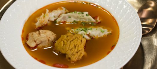Ünnepi halleves harcsás tésztabatyuval