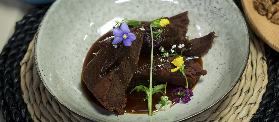 A csokoládét és a vajat felolvasztjuk, hozzáadjuk a tejszínt, a cukrot, a lime-ot, sózzuk, majd összekeverjük. Hozzáadjuk a többi hozzávalót, és a masszát lassan a kivajazott tepsire öntjük. 25 percig sütjük 170 fokon. A tejszínt, a vaníliát, a vajat és a sót felforrósítjuk, majd a cukrot és a szirupot karamellizáljuk. Felöntjük a tejszínes alappal és a kívánt állagúra redukáljuk.