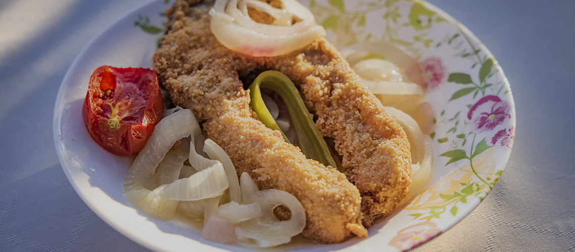 Tojás, liszt, és zsemlemorzsa klasszikus panírjába forgatott ponty patkókat forró olajban egy serpenyőben kirántunk. Közben egy másik serpenyőben kevés olajon sózott vöröshagymát fonnyasztunk, de csak enyhén. Ecetes cukros babérleveles szemesborsos édes-savanyú öntetet készítünk, és egy nagy tálba belekanalazzuk a levet, a hagymát, majd rátesszük a ponty szeleteket, és így rétegenként összerakjuk a tálat. Ezt kettő, de inkább három napra a hűtőbe tesszük, és akkor készül majd el.