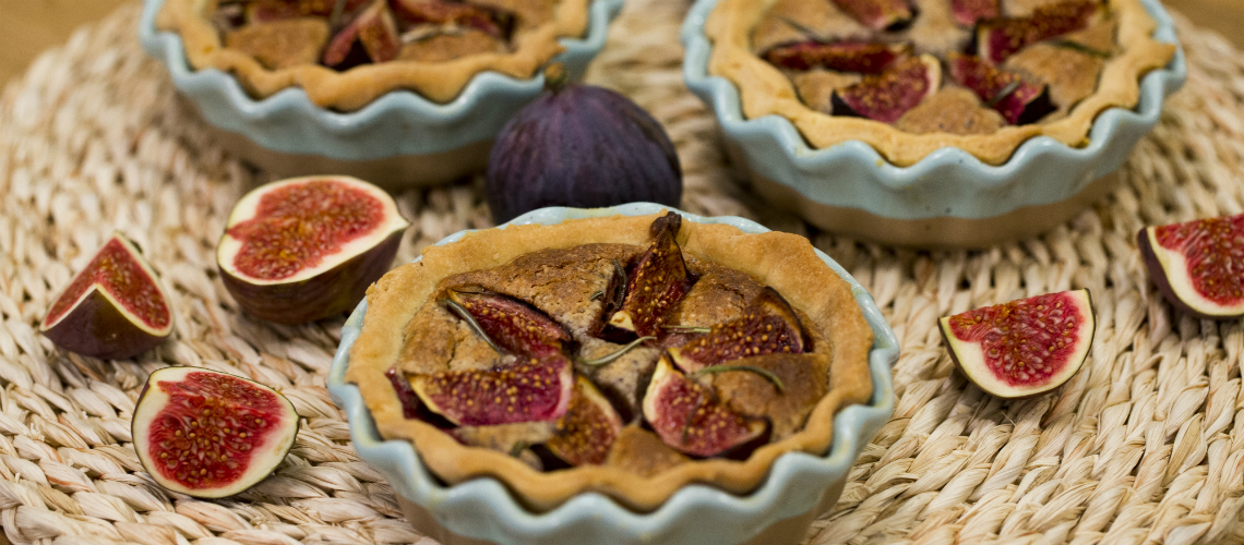 A sütőt 180 fokra melegítjük.A töltelékhez a mogyorót ledaráljuk a cukorral, hozzáadjuk a gyümölcs kivételével az összes többi hozzávalót és tovább daráljuk késes robotgépben. A tésztához a hozzávalókból gyors mozdulatokkal vagy robotgéppel ruganyos tésztát gyúrunk. Kinyújtjuk, kerek piteformába terítjük, rákenjük a tölteléket és elrendezzük rajta a gyümölcsöt és a rozmaringot. Forró sütőben 25-30 perc alatt készre sütjük. Akkor jó, ha a töltelék felemelkedik, a gyümölcs pedig megpuhul. Teljesen kihűtjük szeletelés előtt.