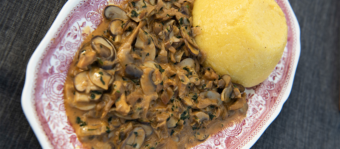Hozzáadjuk a gombát és addig főzzük, míg levet enged.