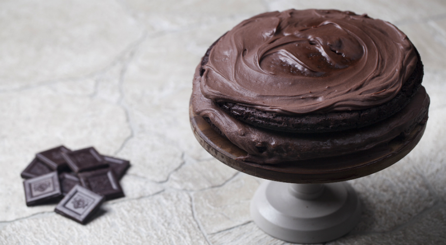 A tésztához a száraz alapanyagokat egy tálban összekeverjük és a keverék közepébe mélyedést alakítunk ki. Egy kis tálban összekeverjük a folyékony alapanyagokat a tojással és az előkészített száraz anyagokhoz adjuk. Kanállal egyenletes masszává keverjük. Egy 18 cm-es tortaformát kibélelünk sütőpapírral, a massza felét beleöntjük és 160 fokra előmelegített sütőben 30 perc alatt készre sütjük. A második tortalapot ugyanígy megsütjük. Rácson teljesen kihűtjük a tortalapokat. A krémhez a csokoládét összetörjük és közepes tálba tesszük. A tejszínt egy közepes lábosban forrásig hevítjük és a csokoládéra öntjük. Egyenletesre keverjük – fényes, selymes masszát kell kapnunk. 2 dl-t a csokikrémből hűtőbe teszünk kb. 10 percre, a többit hagyjuk szobahőmérsékletűre hűlni. Az egyik tortalapot tányérra vagy tortatálra tesszük és megkenjük 2 ek szederlekvárral. Erre kenjük a hűtőben lehűtött krémet, majd rátesszük a másik tortalapot. Ezt is megkenjük 2 ek lekvárral, és ráöntünk egy keveset a szobahőmérsékletű krémből. Vékonyan bevonjuk vele a tortát, az oldalát is, majd pár percre a hűtőbe tesszük, hogy megdermedjen a krém. A maradék krémmel is bevonjuk – így szépen el kehet kenni rajta a krémet, mert az első réteg megköti a morzsákat. Tálalásig, de legalább 1 órára hűtőben pihentetjük.