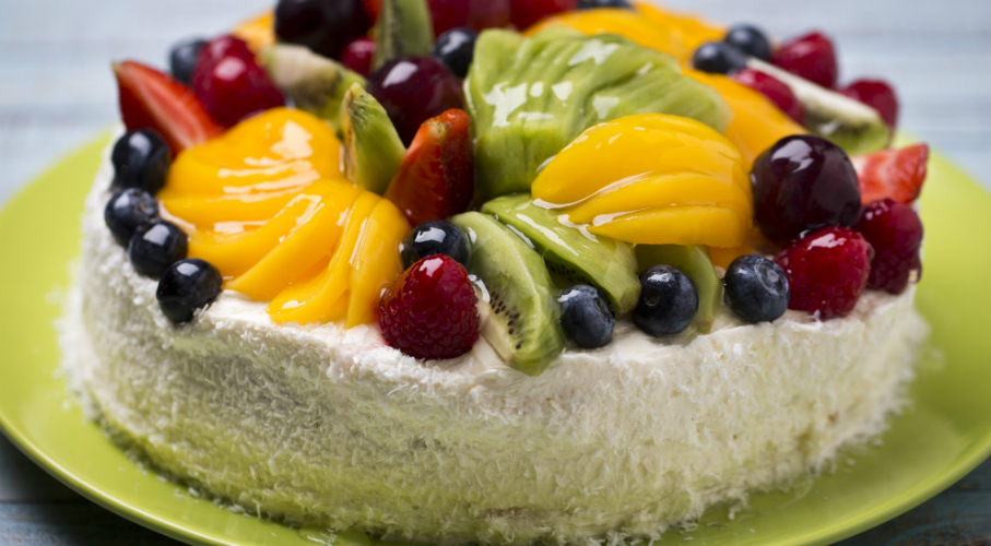 Először kikenjük és liszttel beszórjuk a tortaformát (26 cm átmérő). Ezután a sütőt 180 °C fokra előmelegítjük és a 4 tojásfehérjéből kemény habot verünk. Ezt követően a 4 tojássárgáját habosra keverjük a porcukorral, hozzáadjuk a nedves hozzávalókat, majd a lisztet. Ezután kézzel beleforgatjuk a tojásfehérjéből vert habot. A tésztát a formába töltjük, majd világosra sütjük. Tűpróbával ellenőrizzük. A tejből, cukorból és pudingporból sűrű pudingot főzünk és hagyjuk kihűlni. A forró pudingra műanyag fóliát helyezünk, hogy ne képződjön rajta bőr, és úgy hagyjuk kihűlni. A vajat a cukorral habosra keverjük és fokozatosan hozzáadjuk a kihűlt pudingot. Ezután hozzáadjuk a tejfölt, a habfixálót. Mindebből sima krémet keverünk. A kihűlt tortaalapokat felvágjuk és lekvárral bekenjük – legjobb a ribizli vagy más savanykás lekvár. A krémmel is bekenhetjük, vagy a krémet használjuk csak az oldal kenéséhez. A torta szélét megszórjuk kókusszal. És eljött az idő, amikor használjuk a fantáziánkat: a kedvenc gyümölcseinket, és ami kéznél van, szépen a tortára rétegezzük. Elkészítjük a zselatint – az összes hozzávalót folyamatos keverés közben felforraljuk, majd elzárjuk a gázt. Kicsit még keverjük, majd kissé lehűtjük, mielőtt a gyümölcsökre öntjük (nem szabad forrón ráönteni). Mivel a gyümölcsök nem egyforma magasságúak, a zselatint kenőtollal hordjuk fel. A tortát a hűtőbe tesszük és hagyjuk kihűlni.
