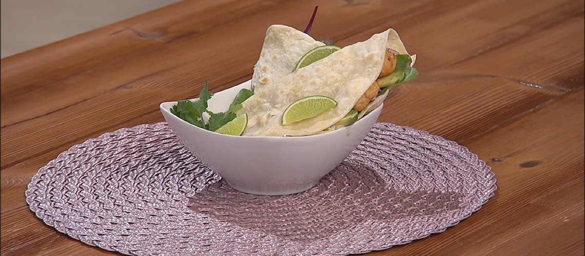 Egy tacóra szedjünk salátakeveréket, fektessük rá az avokádószeleteket, szórjuk meg szeletelt lilahagymával, majd helyezzünk rá 4-5 bundás haldarabot. Locsoljuk meg a krémmel, és szórjuk meg a friss korianderrel. Kínáljuk lime-gerezdekkel.