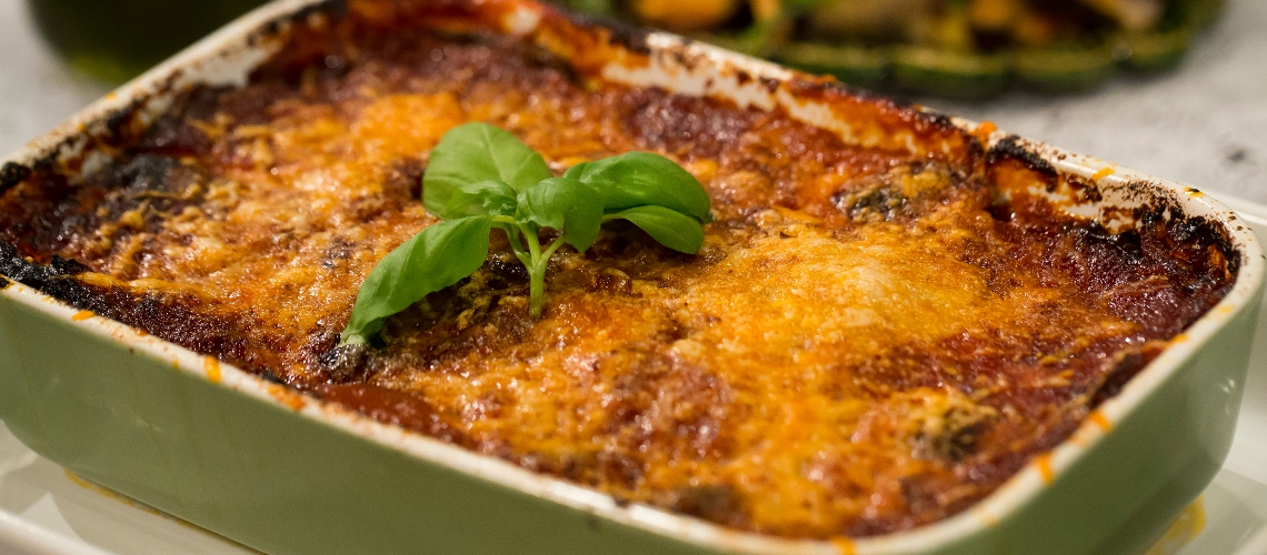 A tepsit beolajozzuk, rétegezni kezdjük: padlizsánszeletek, mozzarella, parmezan, paradicsom, parmezan-majd megismételjük a kört. Miután padlizsánnal lezártuk a rakottas tetejét, a pikáns paradicsom szószt ráöntjük és a sütőbe tesszük fólia nélkül.