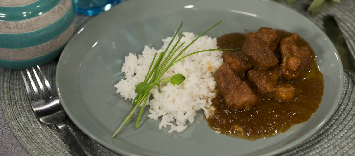 Amikor a hús megpuhult a szaftot besűrítjük, amihez a lisztet vízben feloldjuk majd ha szükséges ízesítjk még sóval és borssal. A legjobb rizzsel tálalni, de tésztával vagy knédlivel is jó.