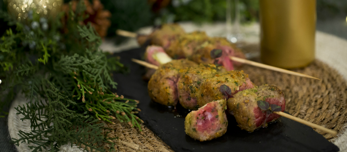 A húst fóliában fagyasztjuk, nagyon vékonyra szeljük (vagy nagyon vékonyra szeletelt marhahús vásárolunk). Peccorinot reszelünk, a reszelt Peccorinot, petrezselymet és prézlit mixerbe tesszük. A marhahús szeleteket megkenjük olajjal. A turmixszolt kompozícióhoz egy kevés túrót adunk. A hússzeleteket feltekerjük, ügyelve arra, hogy a végein jól záródjanak, felhúzzuk a nyársakra, olajjal megkenjük, a tekercseket a prézli és a túró keverékében megforgatjuk, és egy serpenyőben kevés olajon megpirítjuk.