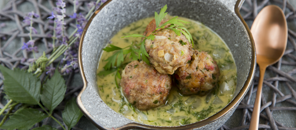 A hagymát, a fokhagymát és a sonkát megtisztítjuk, felvágjuk apró kockákra vágjuk, vajban megsütjük, majd hagyjuk kihűlni és ledaráljuk. A kenyeret tejbe áztatjuk, majd kinyomkodjuk, mielőtt összekeverjük a darált hússal, mustárral, tojással. Sóval és fekete borssal ízesítjük. Kis húsgombókat készítünk, amelyeket kacsazsíron megsütünk.
