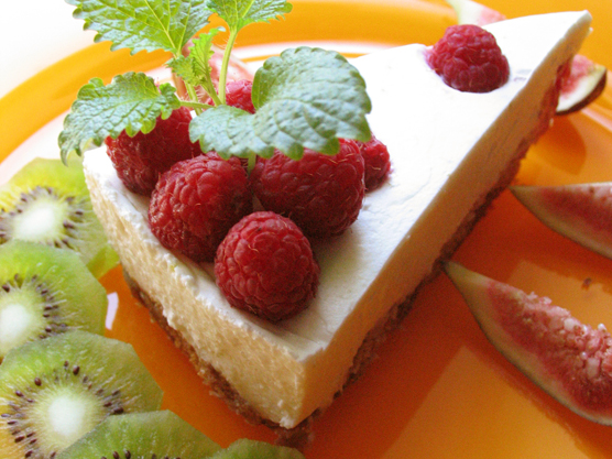 A puszedlit kézzel nagyobb darabokra morzsoljuk, és összekeverjük az olvasztott vajjal. A masszát egyenletesen tortaformába nyomkodjuk, és hűtőbe helyezzük.nnA zselatinlapokat meleg vízben felolvasztjuk. A hideg tejszínt 10 dkg porcukorral kemény habbá verjük.nnA ricottához hozzáreszeljük a lime-ok héját, majd hozzáadjuk a kifacsart levét is, és egy habverővel alaposan összekeverjük. Hozzáadjuk a maradék porcukrot és a feloldott zselatint, majd lazán beledolgozzuk a tejszínhabot.nnA krém felét a megdermedt tortalapra kenjük, majd belenyomkodjuk a málnákat (egy maroknyit félreteszünk a díszítéshez), és rákenjük a maradék krémet.nnA félretett málnát a tetejére szórjuk, gyengéden belenyomkodjuk, és hűtőben legalább 2-3 órát dermesztjük.nnFriss gyümölccsel – például kivivel – tálaljuk.