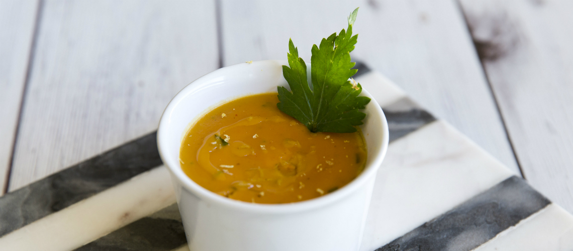 A megszurkodott édesburgonyát elősütjük 180 C-on kb. 45 percig. Lehámozzuk, megtörjük, géppel pürésítjük. Fűszerezzük a pürét, és keverjük össze a tojással, a tejszínnel és a többi összetevővel, sütőformákba adagoljuk. 150 fokra előmelegített sütőbe, vízfürdőbe tesszük kb. 45 percre a sütőbe. Pihentetjük 5 percig. Citrommal, pertrezselyemmel tálaljuk.