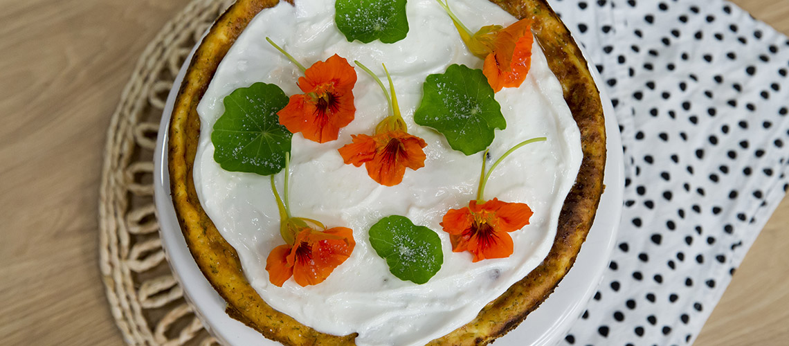 Öntsük a keveréket egy 24 cm átmérőjű formába, és süssük 35 percig;