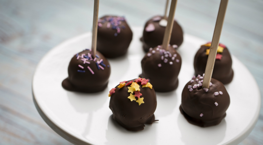 A maradék zserbót késes robotgépben összedaráljuk, majd annyi baracklekvárt, mascarponét, porcukrot és olvasztott tejcsokit adunk hozzá, hogy egy jól formázható masszát kapjunk. Kb. 30 g-os golyókat készítünk, pálcikát szúrunk bele, amit olvasztott csokival ragasztunk hozzá. Hűtés után a sütinyalókákat olvasztott, temperált csokiba mártjuk, és színes cukorral, vagy vágott dióval szórjuk meg.