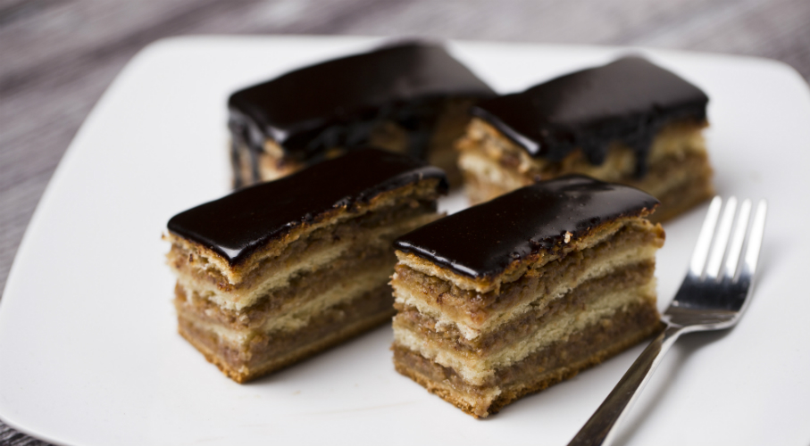 A tésztához felfuttatjuk az élesztőt. A lisztet, a cukrot elmorzsoljuk a zsírral, majd hozzáadjuk a sütőport, sót, tojást, ezután ledagasztjuk az élesztővel. Pihentetjük 2-3 órát, legjobb, ha egy egész éjszakát pihen hűtőben. A tejben felolvasztjuk a cukrot, beletesszük a darált diót, ízesítjük vaníliás cukorral, citromhéjjal. A tésztát 4 részre osztjuk és vékonyra nyújtjuk. Baracklekvárral és a diókrémmel rétegezzük, majd tésztával zárjuk le. 175 fokon sütjük, tepsi mérettől függően 30-50 percig. Csokimázhoz a gőz felett összemelegítjük a hozzávalókat.