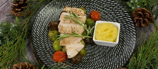 Vajas pulykamell szelet gesztenyés kelbimbóval, forró almapürével
