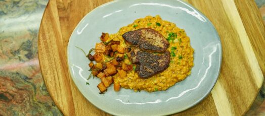 Sütőtökös – édesburgonyás krémleves ricottás raviolíval
