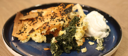 Kecskesajtos, spenótos tepsis börek
