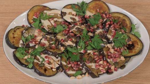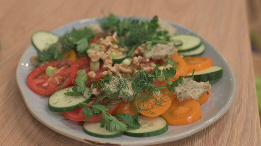 Grúz paradicsomsaláta fokhagymás-korianderes dióval
