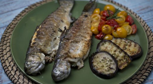 Rozmaringon Sült Pisztráng Grillezett Zöldségekkel