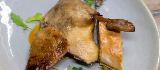 Rozé kacsamell almás lilakáposztával, juhtúrós puliszkával és kacsatepertővel