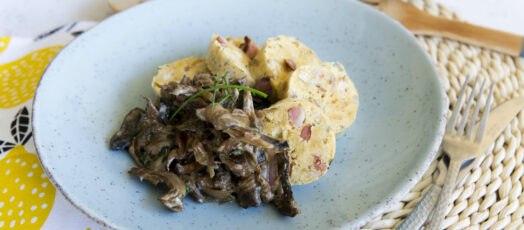 Gombaragu, metélőhagymával és szalonna gombóccal